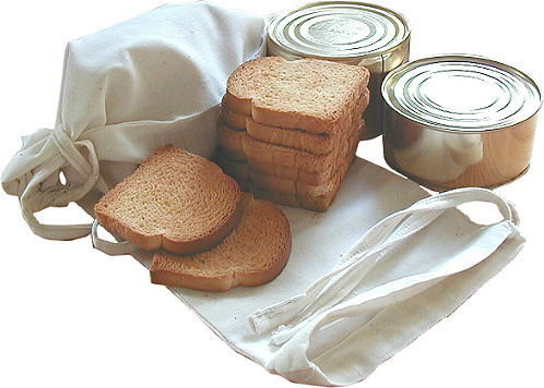 Eiserne Portion, Zwieback- und Reissäckchen.