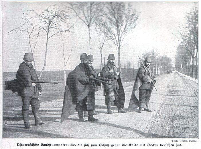 1914: Originaltext: „Ostpreußische Landsturmpatrouille, die sich