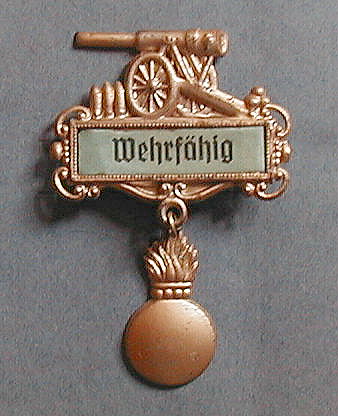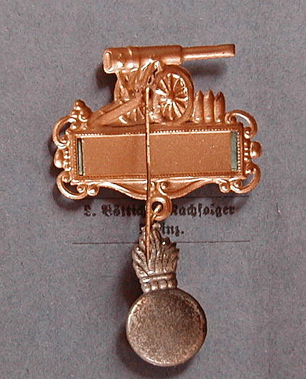 Steckabzeichen zur Musterung, Artillerie. Lackiertes Blech, Papier, 4 x 3,5 cm