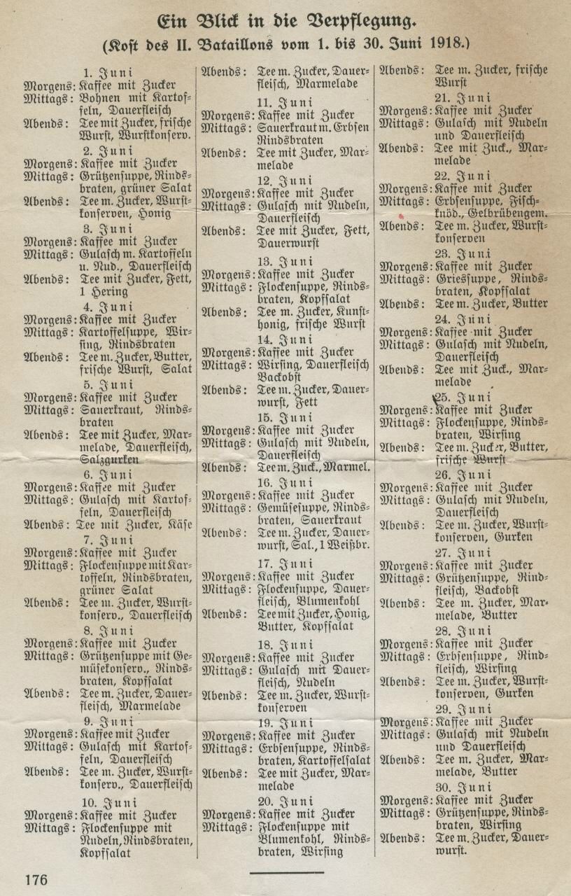 dok147 1918 Verpflegungsplan für Juni 1918 eines II. Bataillons (Regiment nicht bekannt)