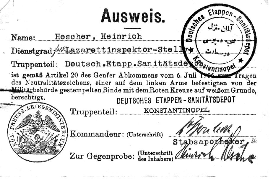 dok148 (undatiert) Deutsches Etappen-Sanitätsdepot Konstantinopel: Ausweis über die