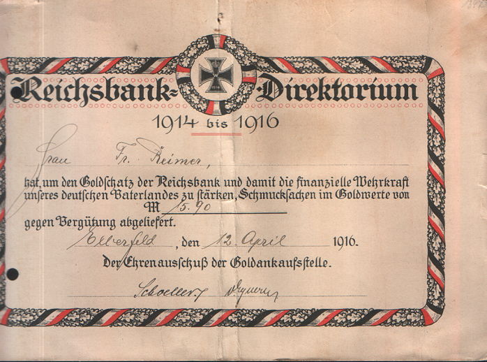dok160 1916 Spendenquittung über die Ablieferung von Schmuckstücken