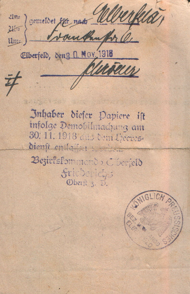 dok162a Rückseite zu dok162: Vermerk über Demobilmachung