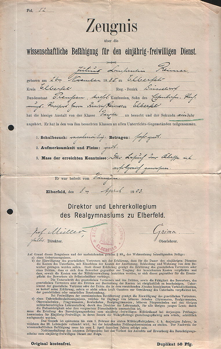 dok166b 1904 Zeugnis über die wissenschaftliche Befähigung zum einjährig-freiwilligen Dienst