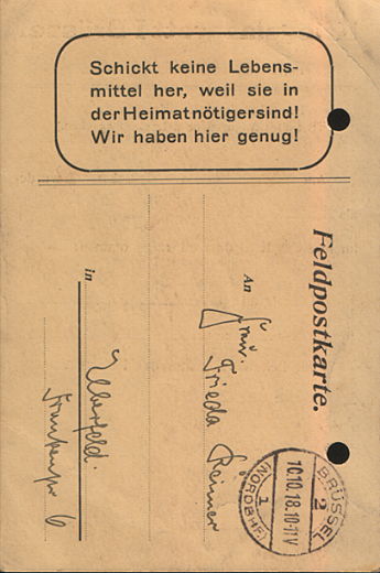 dok190 dok191 Vorder- und Rückseite einer Benachrichtigungskarte an die Angehörigen