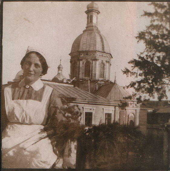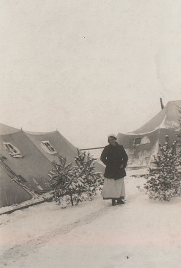 drk02 „ Vor dem Abmarsch in das Feld, Schwester Anni sitzend"