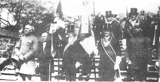 Kranzniederlegung am Kriegerdenkmal im Hindenburgpark, Köln, 1928 Major der Res. a.D. Otto Welsch Vors. des Pionier-Verein Köln Oberst a.D: Grabi General d.Inf. a.D. Kasten Oberst a.D. Grabi, Vorsitzender des Offizier-Verein Ehem. Div.Pfarrer Hammes Düppelstürmer (1866) Theodor Dommen Beachte: Am erorberten Danebrog Lt. d. Res. a.D. Schröder Tafel der 24er am Ehrenmal im Hindenburgpark,Köln. (1985 umbenannt in Friedenspark)