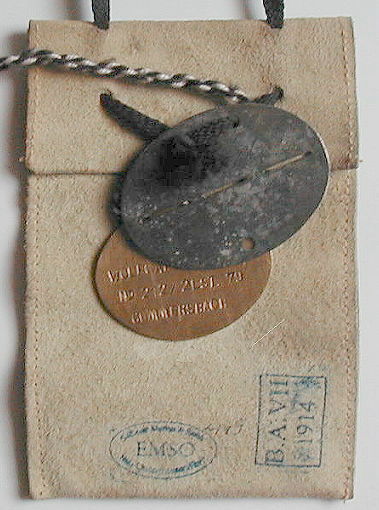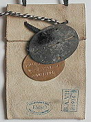 zwei Erkennungsmarken, ein Vorkriegsmodell aus Messing