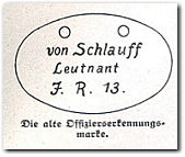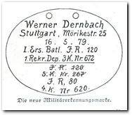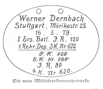5 x 7 cm aus Zinkblech, darauf Name und Anschrift des Trägers, der Aus-