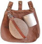 Karabinerhaken, hinten unten ein kurzes Lederstück zum Aufknöpfen.