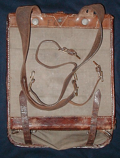 Segeltuch mit Beschlägen aus Kriegsmetallen. Wurde der Tornister im Grabenkrieg