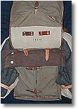 verkleideten Holz- oder Geweberahmen. Der Tornister wird mit zwei