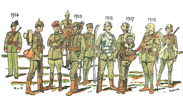Auf der Abbildung ganz oben links zu sehen.Die neue Uniform 1907/10 der Infanterie entsprach im Schnitt