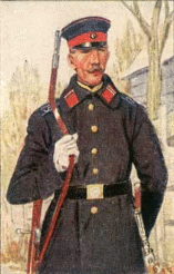 noch Landwehrsoldaten, die den Mantel nach alter Art tragen.