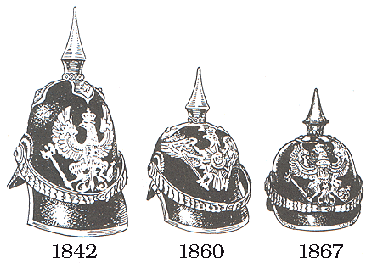 Die Kokarde wird aus Metall gefertigt1857 Die Helmhöhe wird verringert 1860 Die Helmhöhe wird verringert. Neuer, kleinerer Adler, jetzt mit