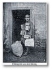einen derben Knotenstock, und in der Linken trägt er noch einige Pakete.